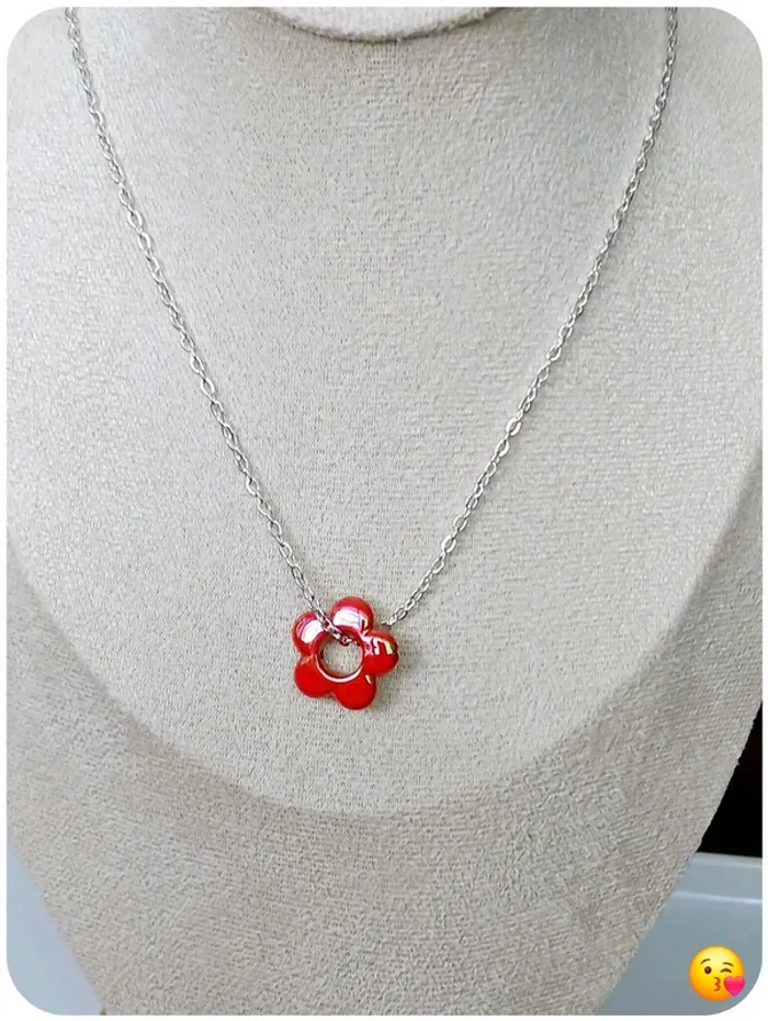 Collier chaîne fine avec pendentif fleur rouge – style pop & tendance - photo numéro 5