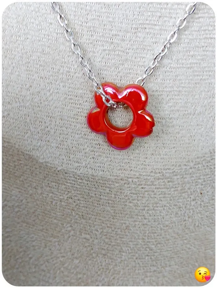 Collier chaîne fine avec pendentif fleur rouge – style pop & tendance - photo numéro 4