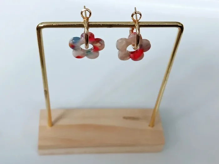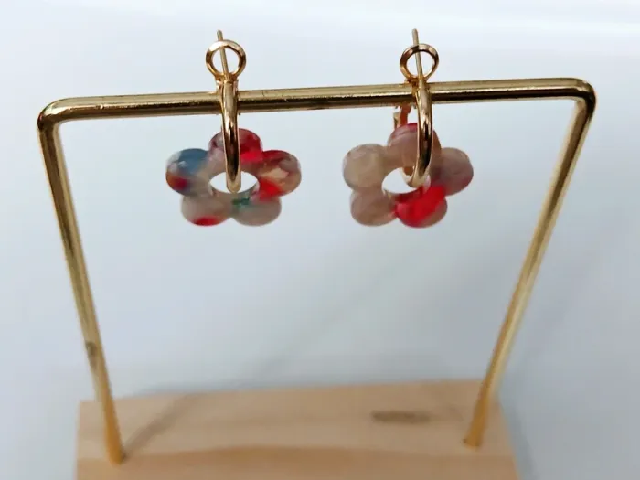 Créoles pétales résine effet fleuri – tendance originale - photo numéro 1