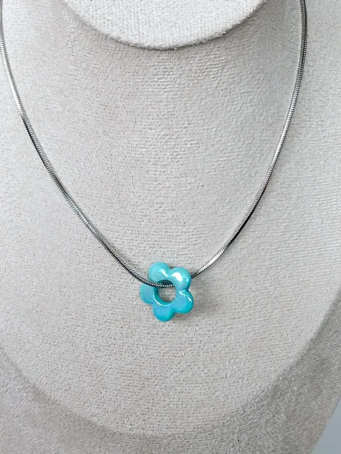 Collier serpent minimaliste et fleur turquoise – style pop & tendance - photo numéro 2