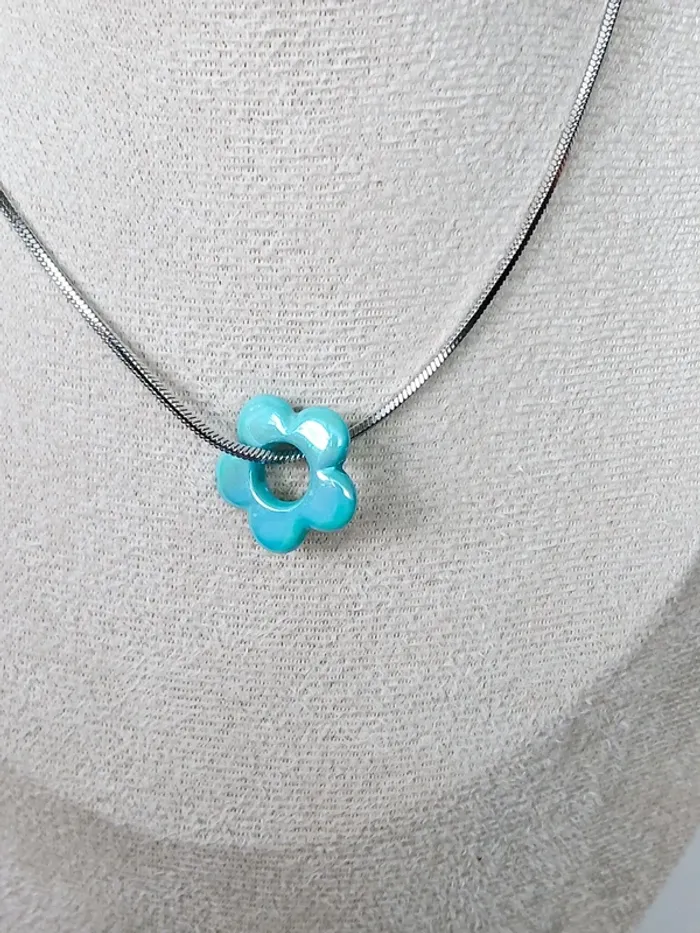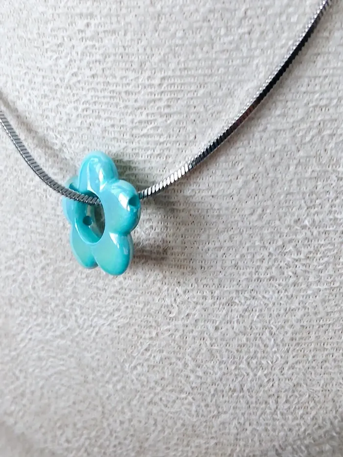 Collier serpent minimaliste et fleur turquoise – style pop & tendance - photo numéro 4