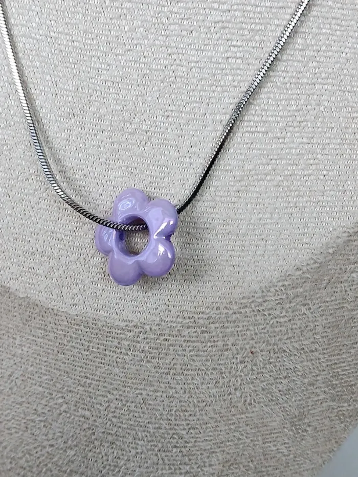 Collier argenté avec fleur violette en résine – Bijou pop coloré - photo numéro 1