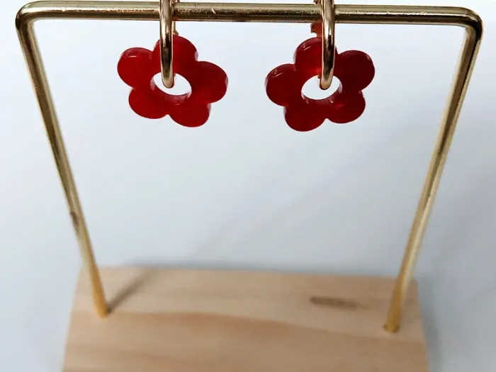 Boucles d’oreilles créoles dorées et pendentif fleur – style pop et affirmé - photo numéro 1