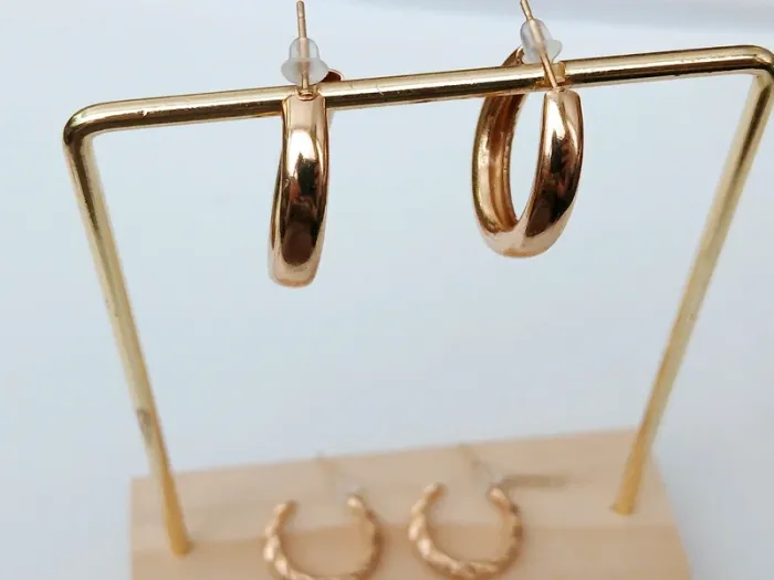 Lot 2 paires boucles d’oreilles créoles dorées vintage – chic & tendance été - photo numéro 2