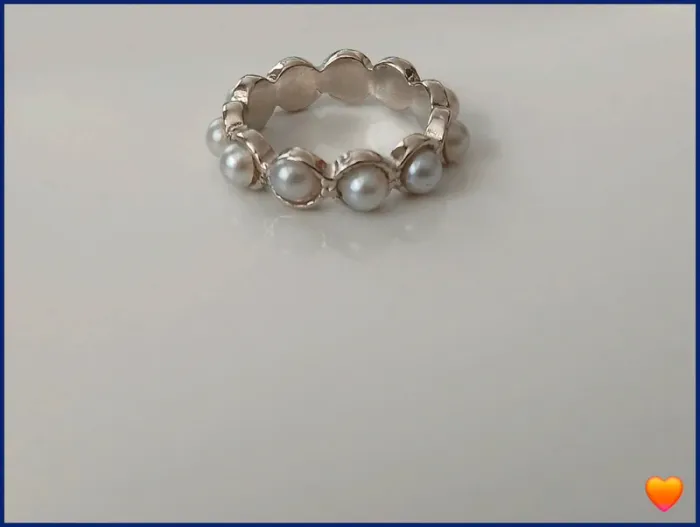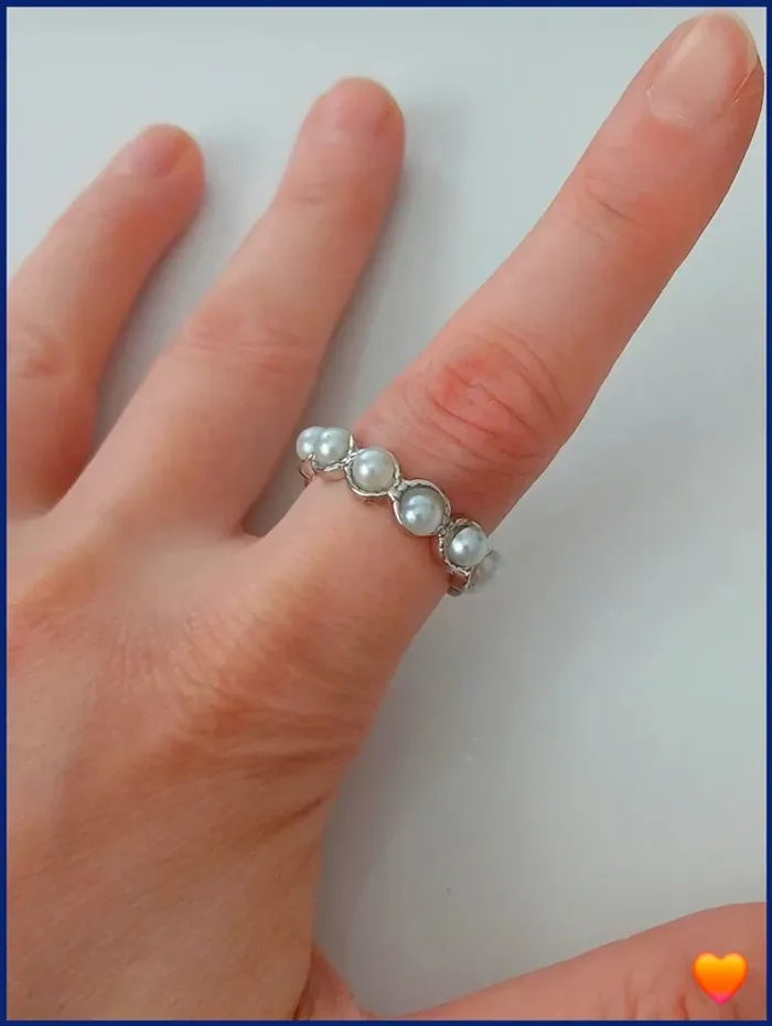 Bague perles blanche en acier inoxydable - photo numéro 1