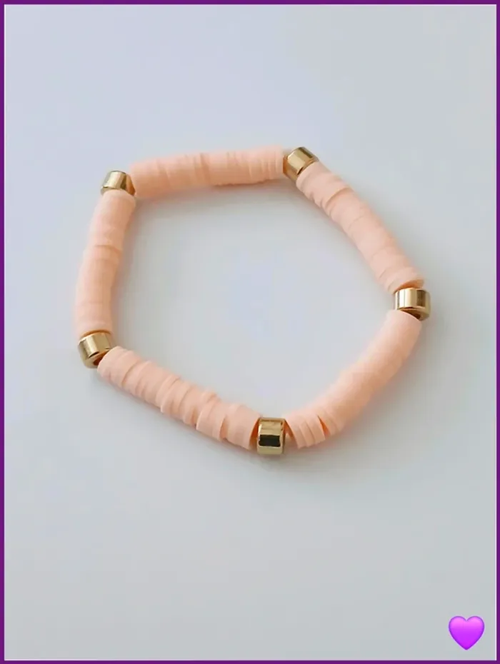 Bracelet en perles heishi rose et doré - photo numéro 1