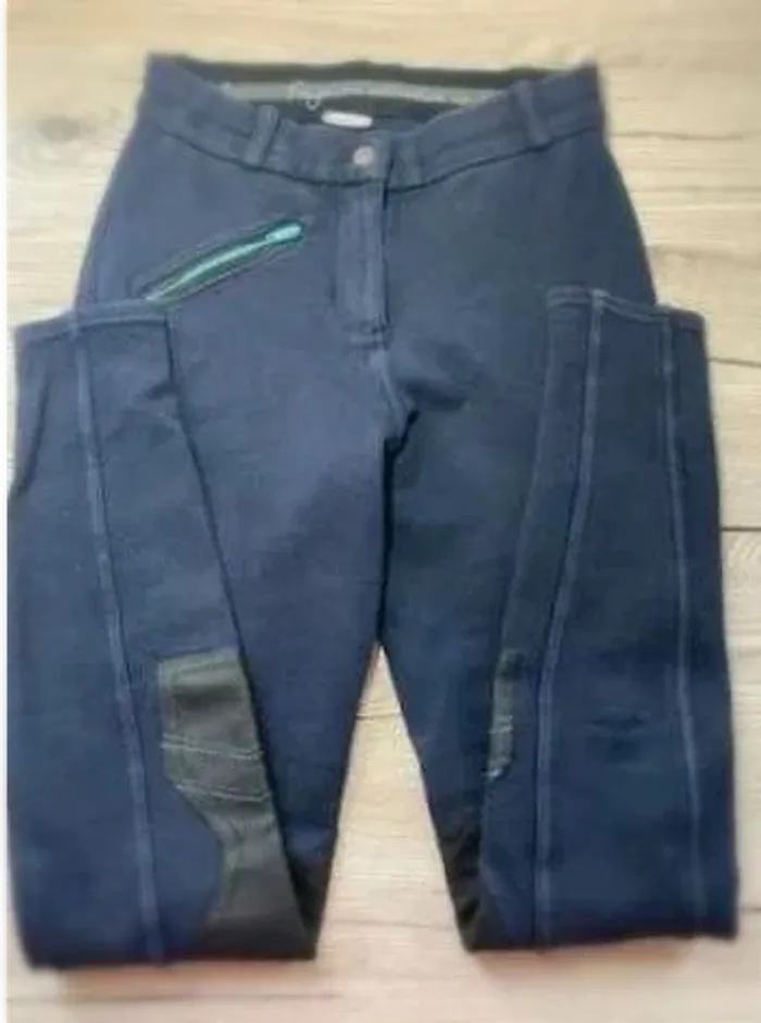 Pantalon  d’Équitation  Fouganza Taille  S  / 36, Bleu Marine,  Poches Zippées Turquoise, Grip - photo numéro 1