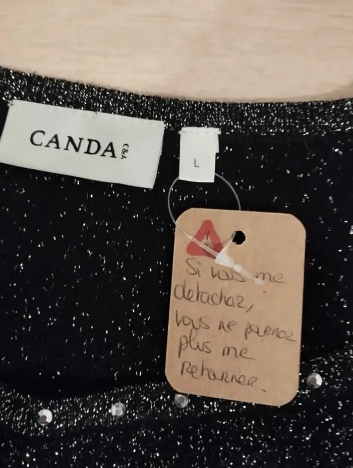 Pull Canda taille L noir et argenté avec strass au col - photo numéro 7