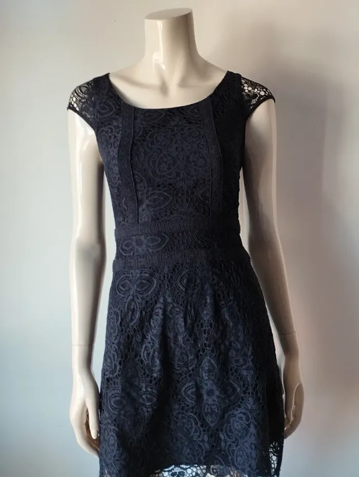 Robe en "dentelle" bleue marine taille s - photo numéro 1