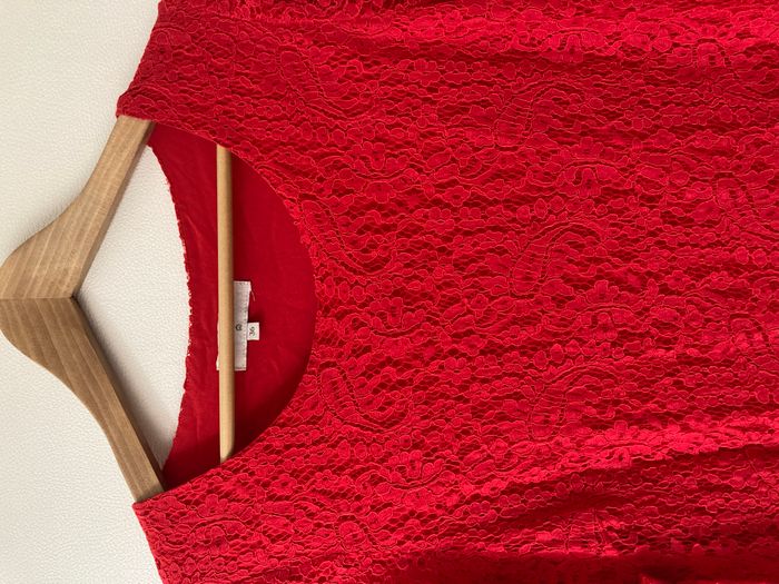 taille 36 forme droite, entièrement doublée sauf les manches aucun défaut largeur au niveau des aisselles 45 cm hauteur 95 cm