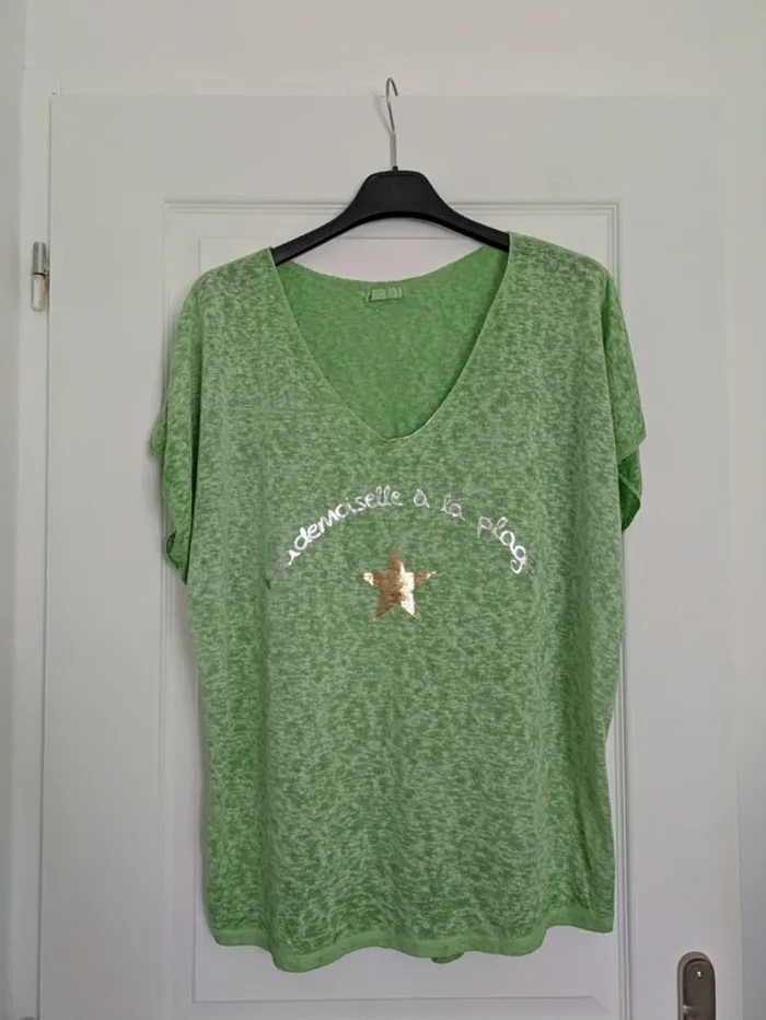En coton, viscose et lin En très bon état Profitez-en!! Réduction de 20% sur le lot de 2 vêtements achetés Réduction de 30% sur le lot de 3(et +) vêtements achetés Merci de me contacter, les réductions ne s'appliquent pas automatiquement pour les vendeurs pro.