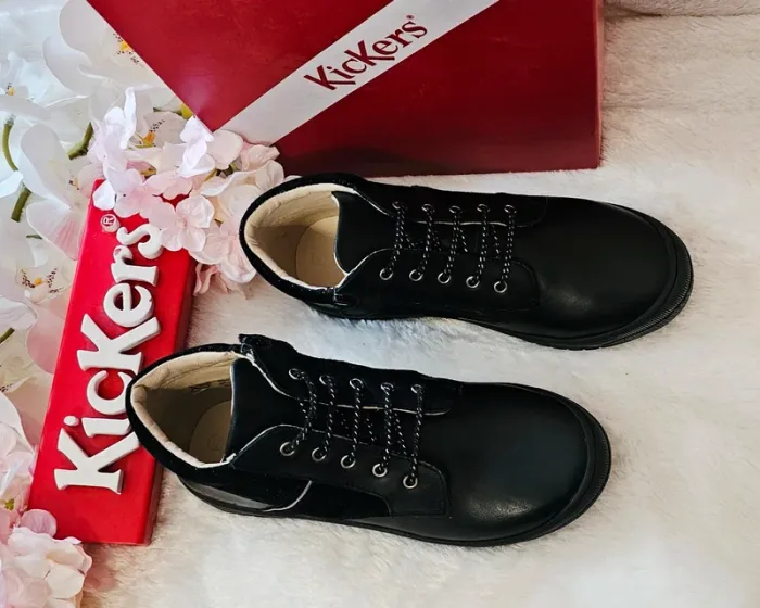 Bottes Bottines cuir Zip Noir Brillant Kickers T33 - photo numéro 1