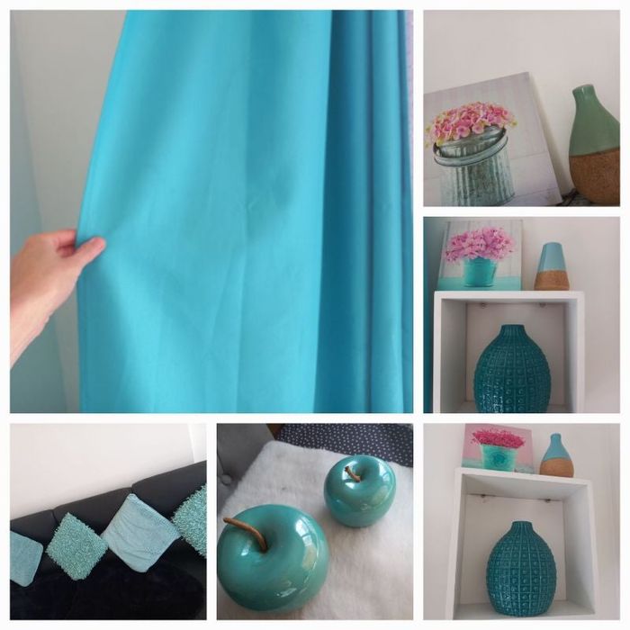Lot rideaux coussins..deco bleu. Les etagers en cube ne sont pas a vendre