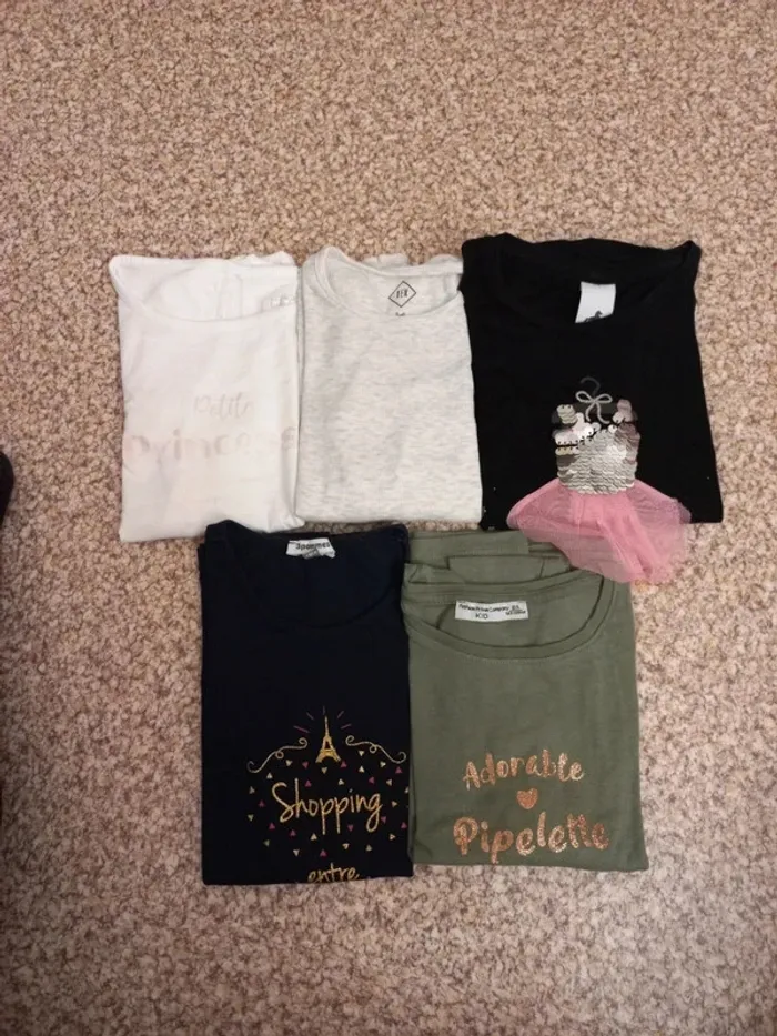 Lot 4 Tee-shirt 8 ans et un en 5/6 ans Pipelette. Princesse