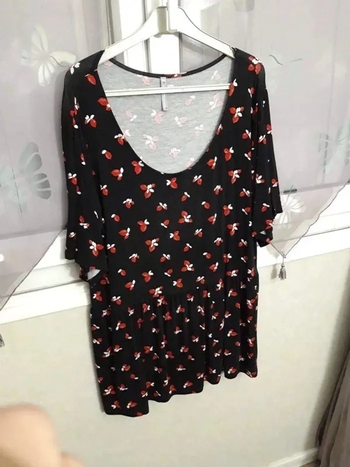 Tee-shirt tunique noir avec des citron rouge Taille 46/48 blancheporte