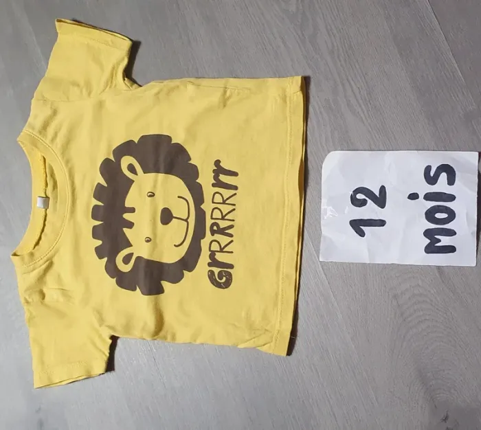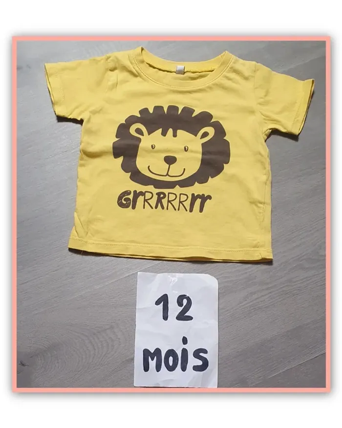 Maillot t-shirt manches courtes 12mois garçon 74cm #ann010203garçondouzemois Jaune marron lion 🦁