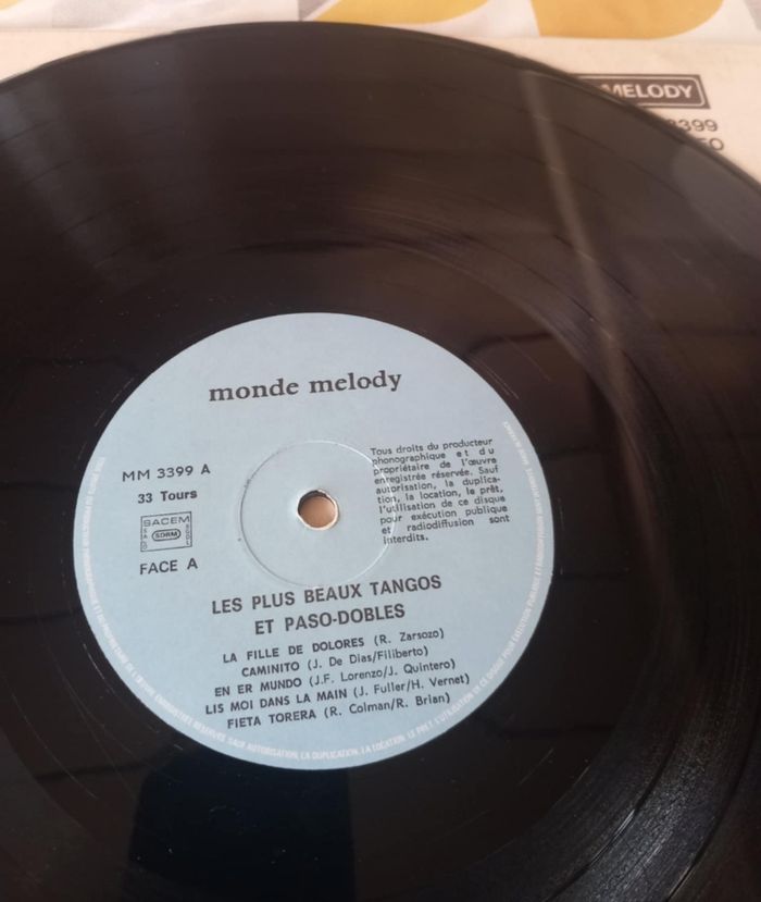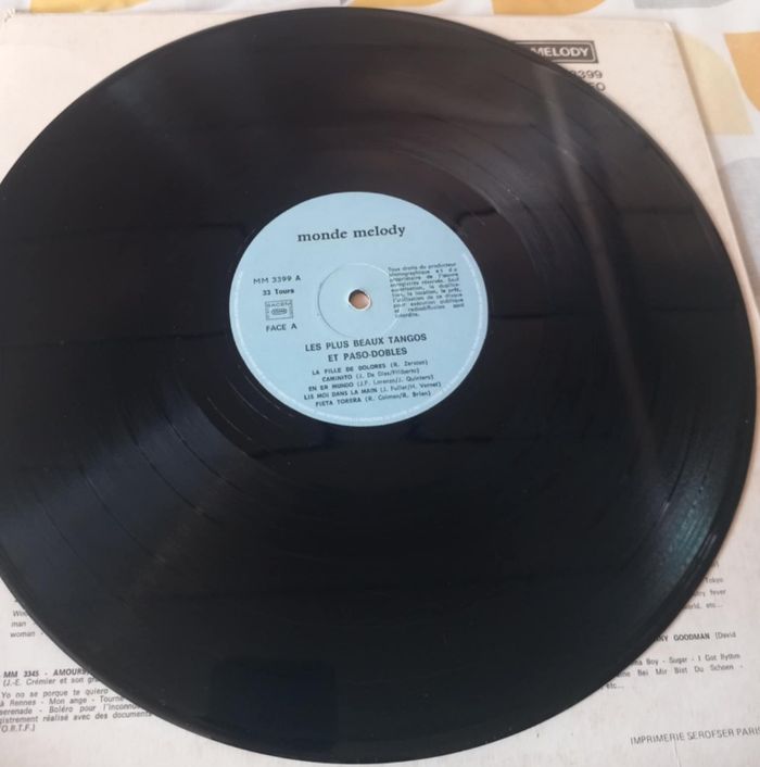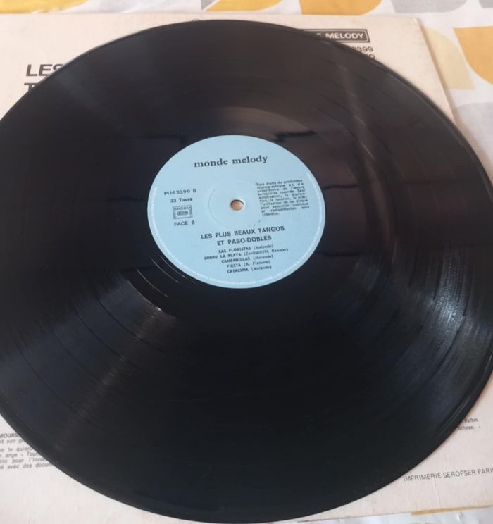 Disque vinyle 33 tours Titre : Les plus beaux tangos et paso-dobles Face A 5 titres Face B 5 titres En bon état