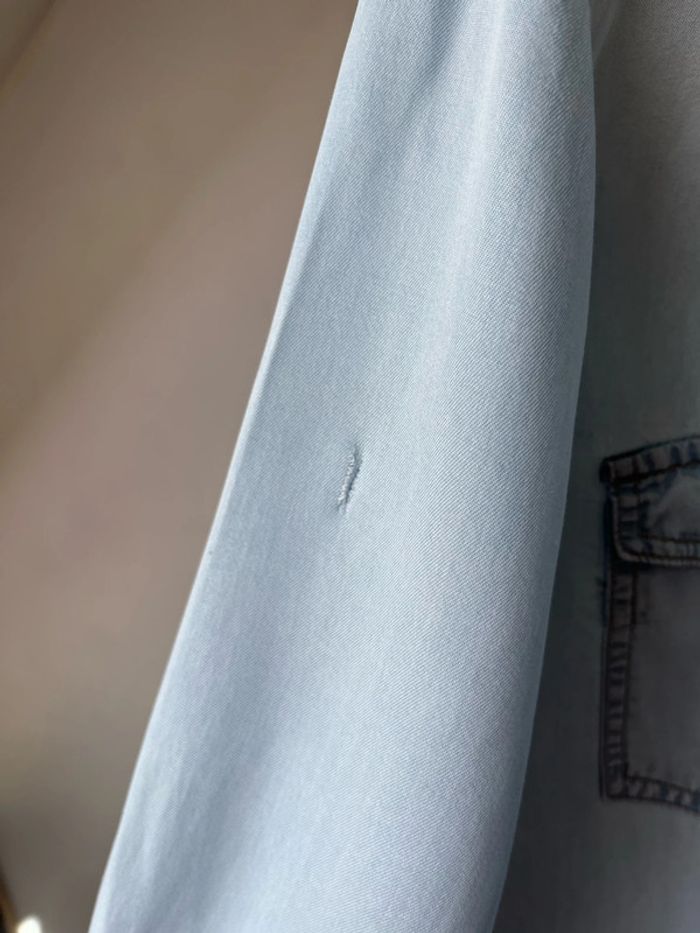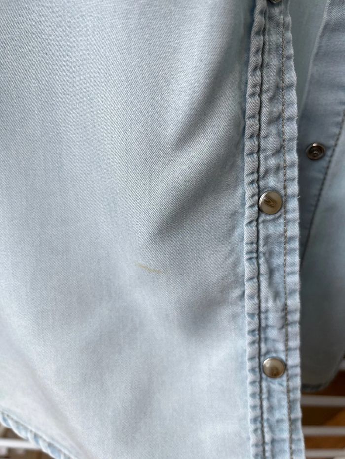 Veste en jean Amisu taille M couleur bleu bon état Petite tache + petit trou dans une manche