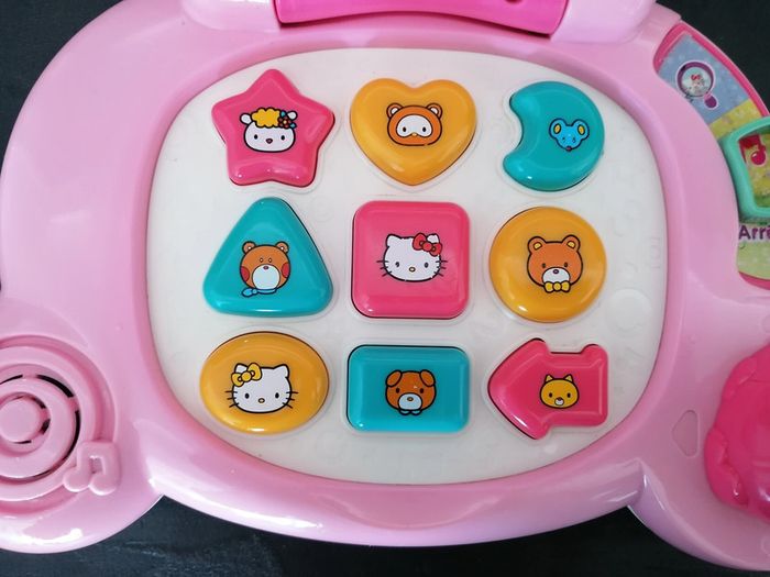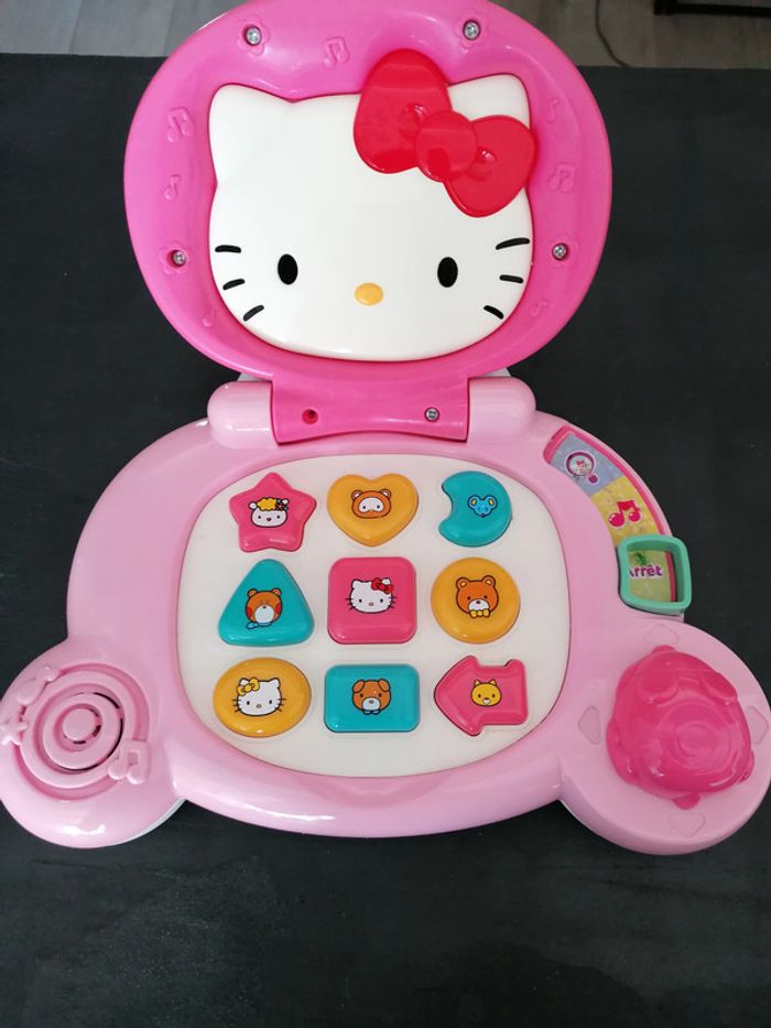 Ordinateur hello kitty vtech 2 modes Qqs traces sur les autocollants (cf photo) Vendu avec piles