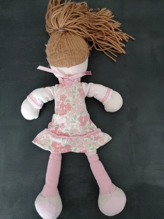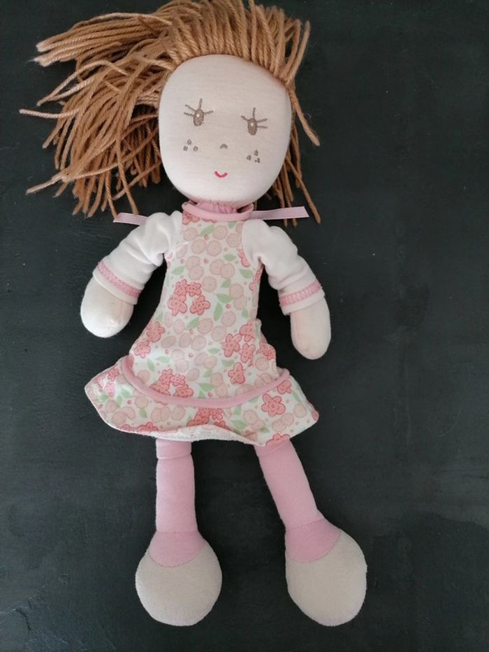 Doudou poupée kaloo collection lilirose Robe fleurs Qqs bouloches sur l'arrière des cheveux