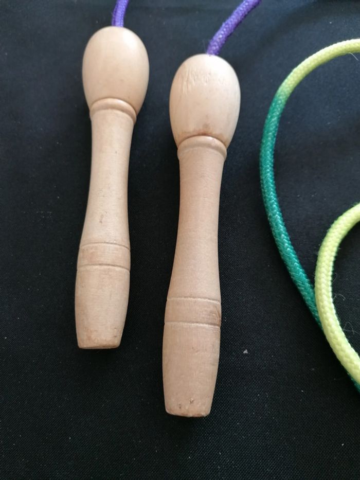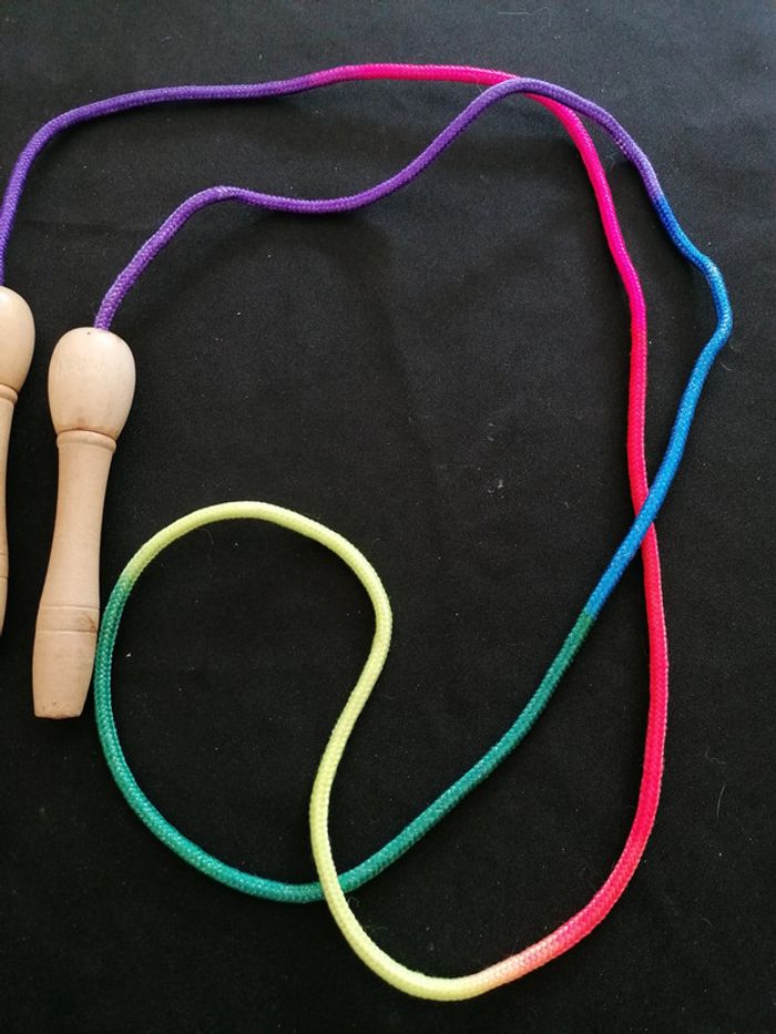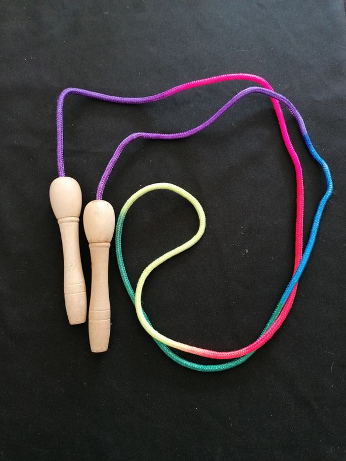 Corde à sauter en tissus et poignées en bois Fil multicolor fluo