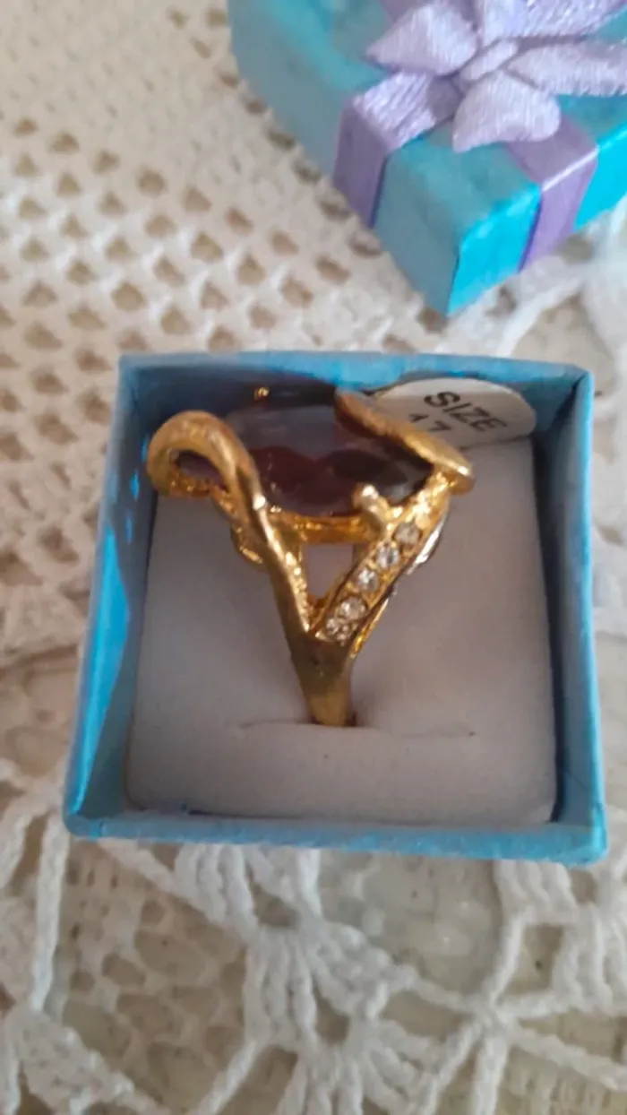 Superbe bague, grosse pierre violette ,strass couleur dorée Taille : 54 - photo numéro 5