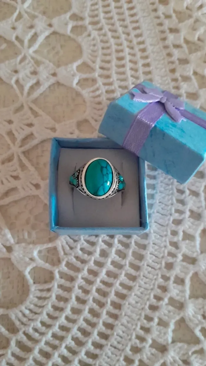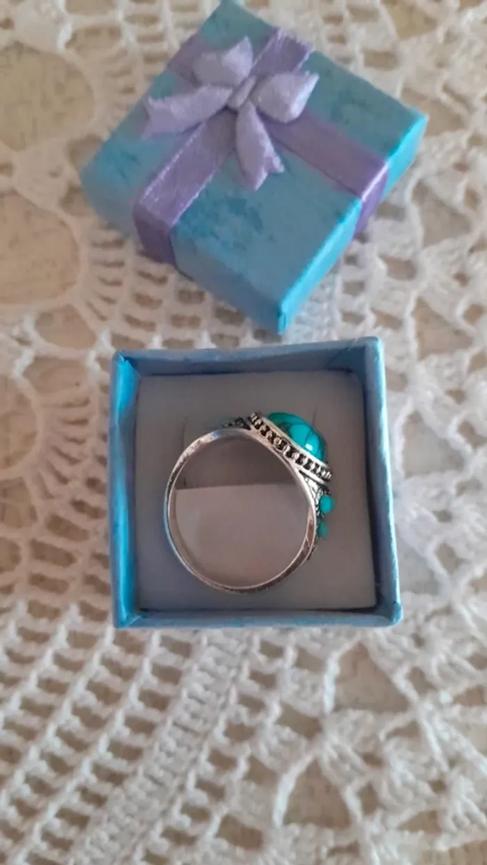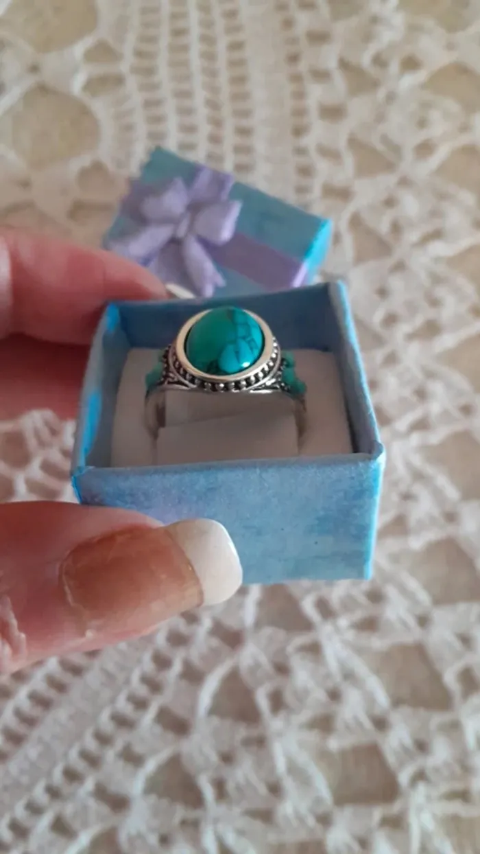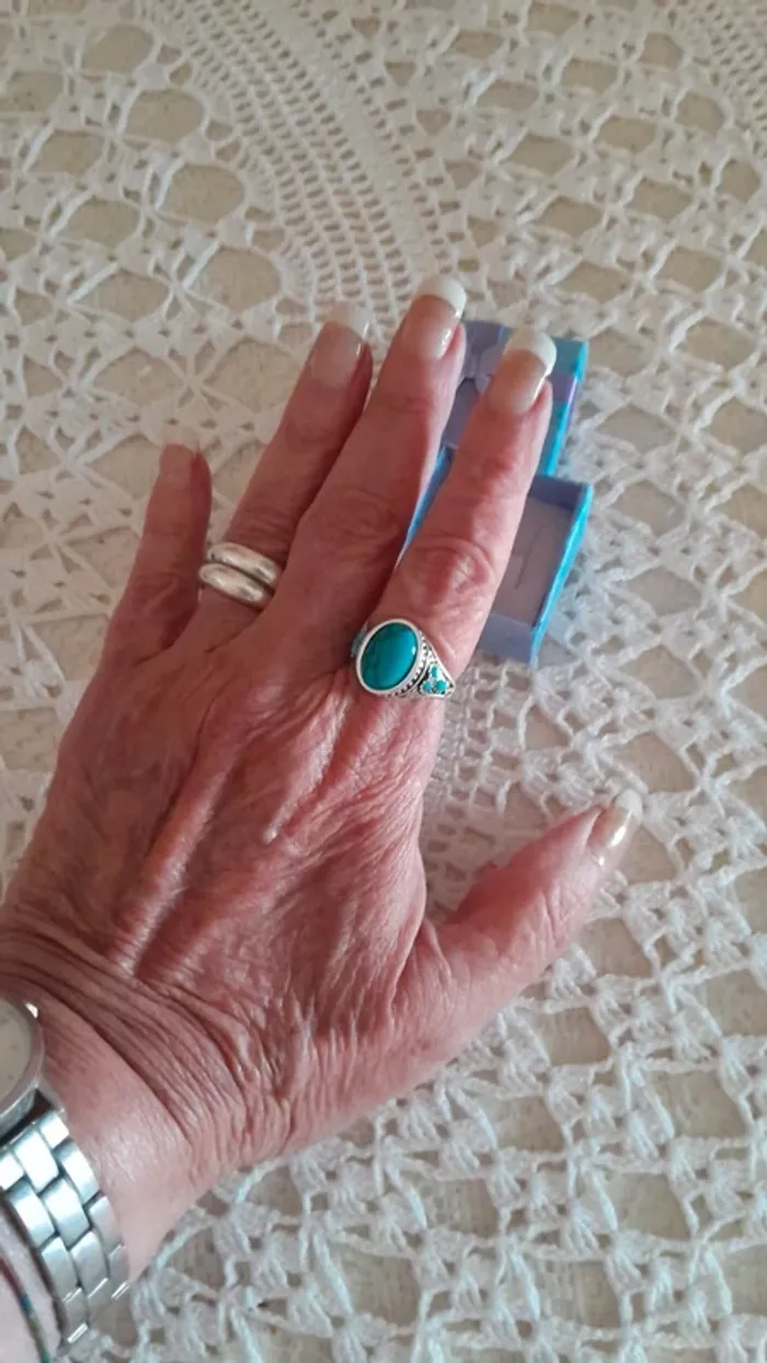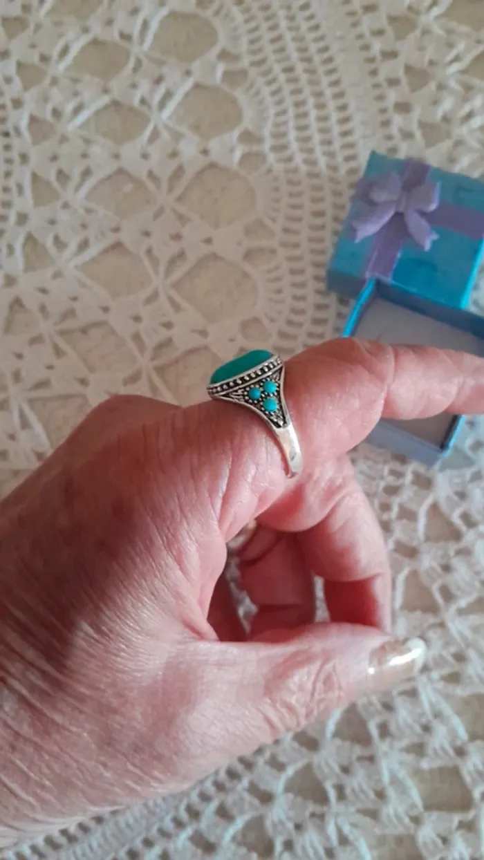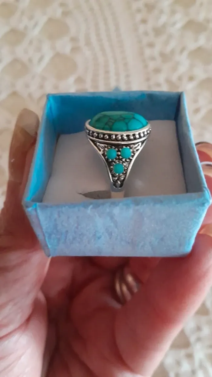 Bague pierre turquoise ,style bohème- couleur argenté- Taille : 58 - photo numéro 7