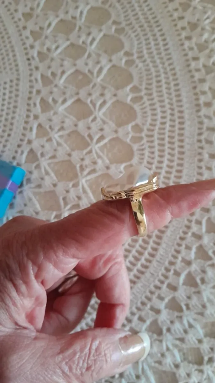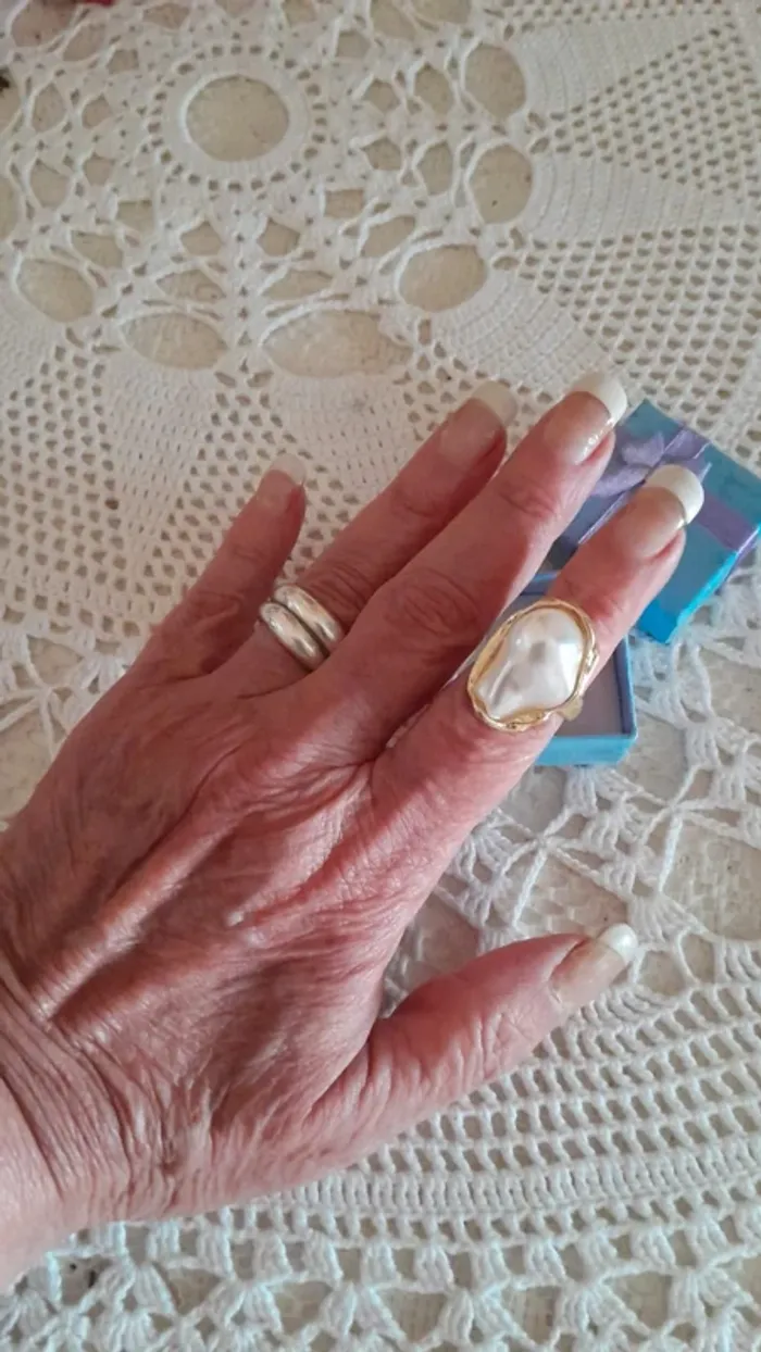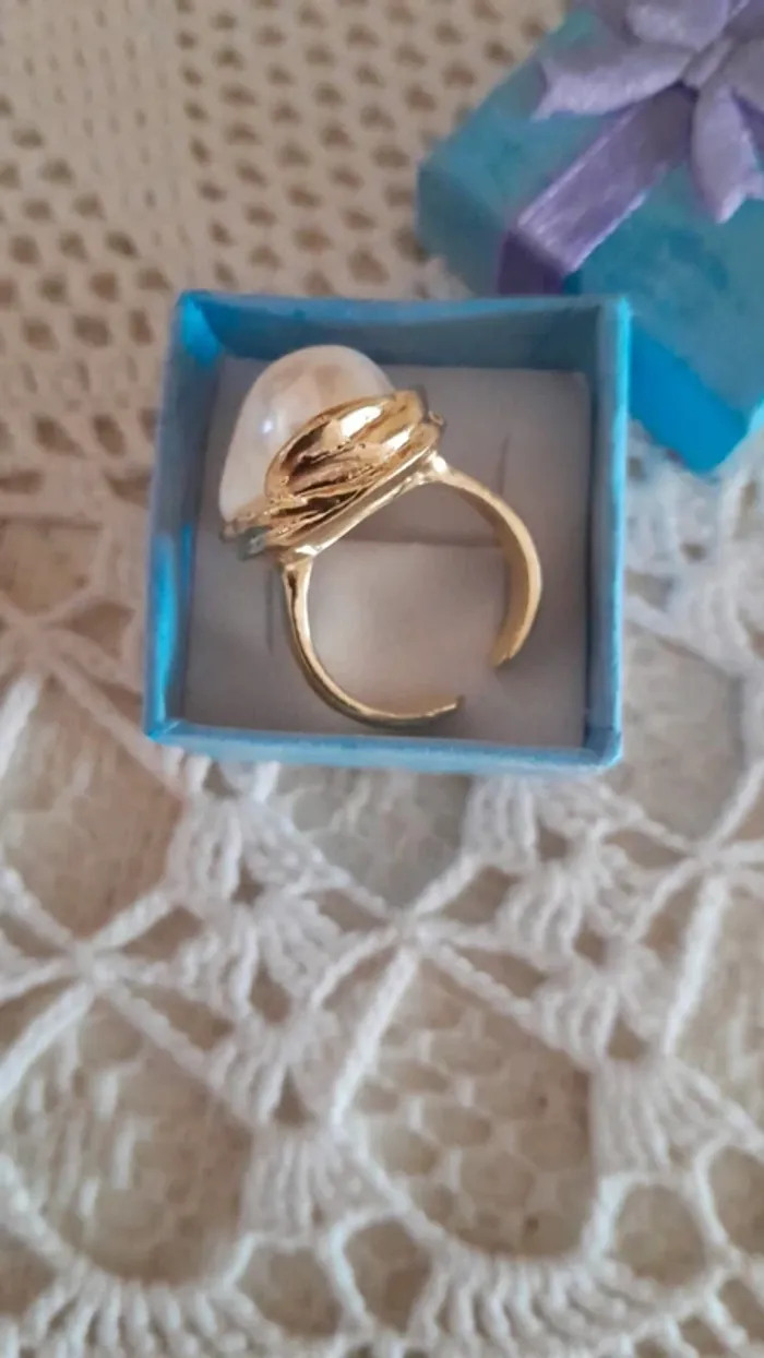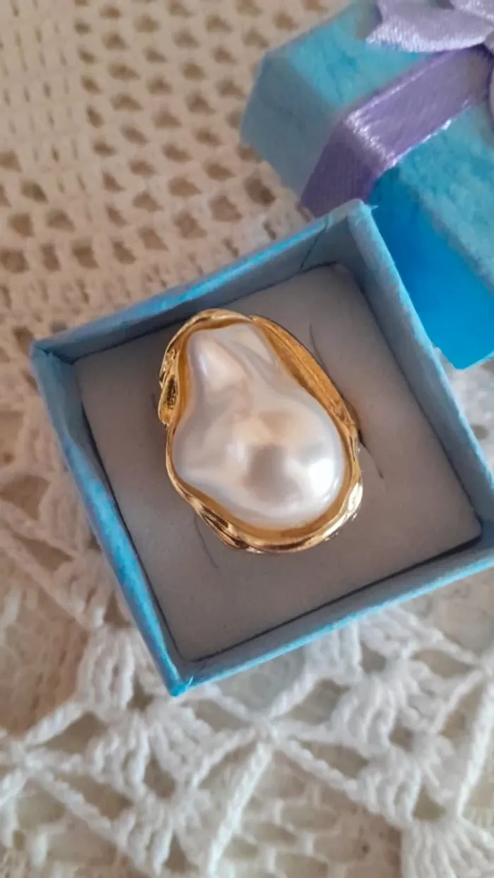 Bague avec grande perle blanche ,réglable style bohème alliage couleur dorée neuf