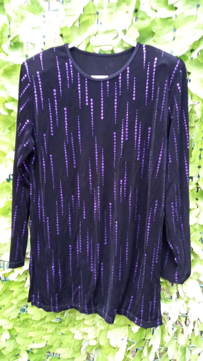 Long Haut femmes noirs et brillants violets T: 48 - photo numéro 1