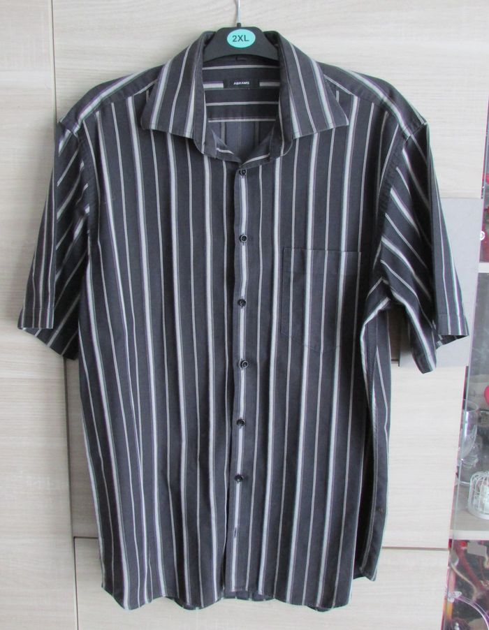Très jolie chemise à rayures pour homme, en 100% coton de la marque Abrams, en excellent état. Mesures: Tour de cou: 41cm Epaule à épaule: 51cm Aisselle à aisselle: 60,5cm Longueur: 77,5cm N'hésitez pas à visiter mon dressing pour faire un lot et profiter des remises activées #chemise #homme #rayures #abrams #41cm #taillexl