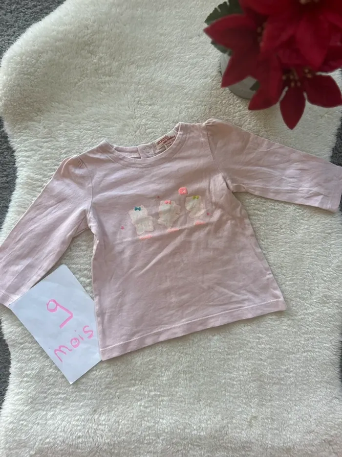 T-shirt rose manche longue Marque DPAM Taille 9 mois En très bon état #charlinelolfille9mois N’hésitez pas si vous avez des questions