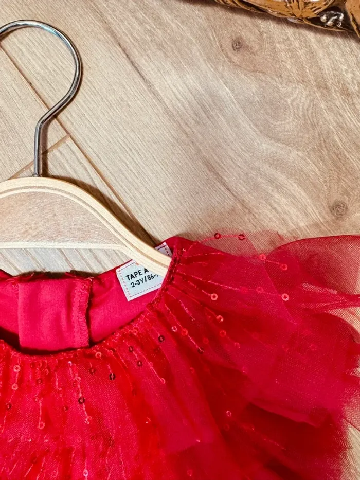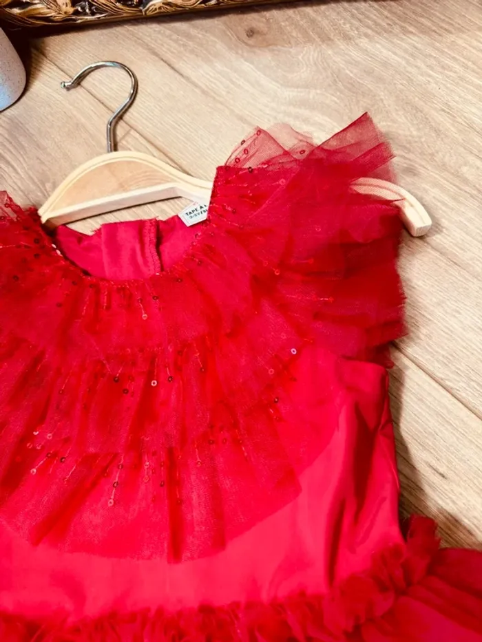 Taille 2-3 ans Robe créateur fille TAO rouge * sequins tulle * 🌹 - photo numéro 5