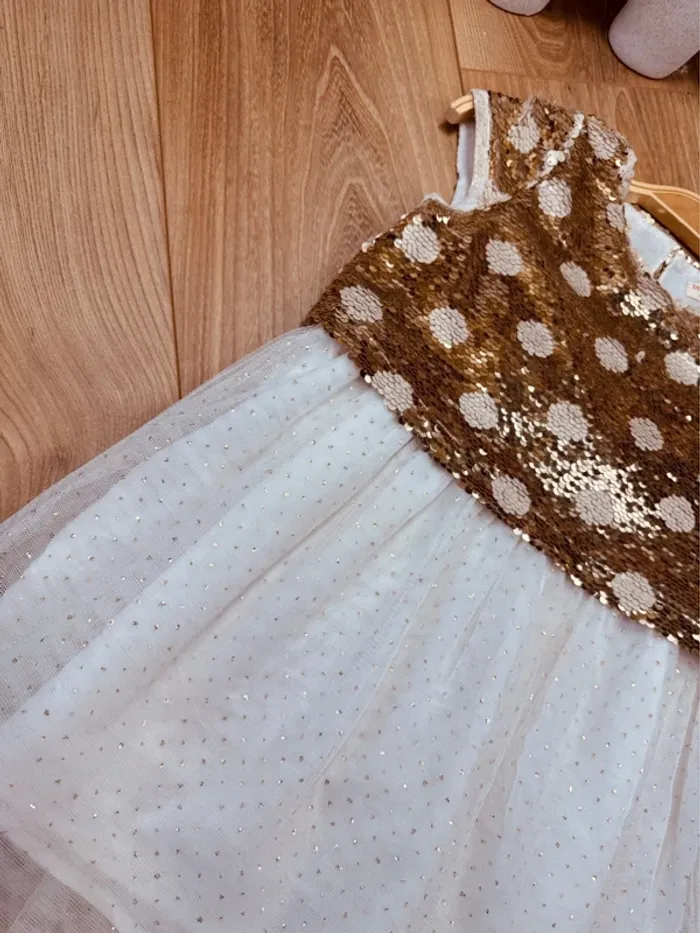 Taille 4 ans Robe de cérémonie fille DPAM blanc doré * sequins tulle * 🌸 - photo numéro 1