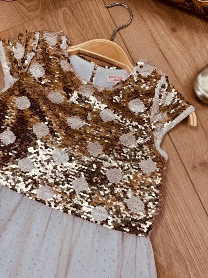 Taille 4 ans Robe de cérémonie fille DPAM blanc doré * sequins tulle * 🌸 - photo numéro 5