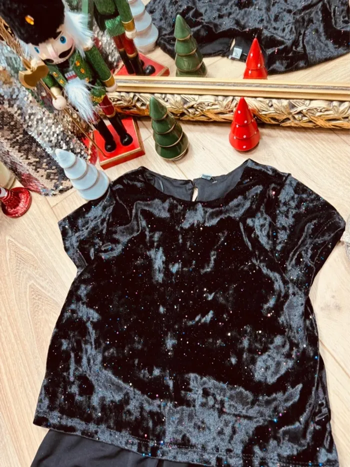 Taille 6 ans combinaison 2 en 1 fête fille noire * velours scintillant * 🎄 - photo numéro 3