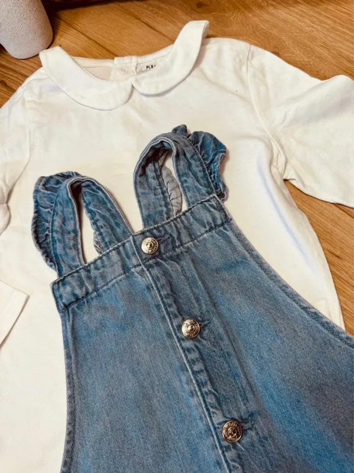 Taille 3 ans tenue 4 pièces fille multimarque blanc bleu jean abricot * agrumes * 🩷 - photo numéro 3