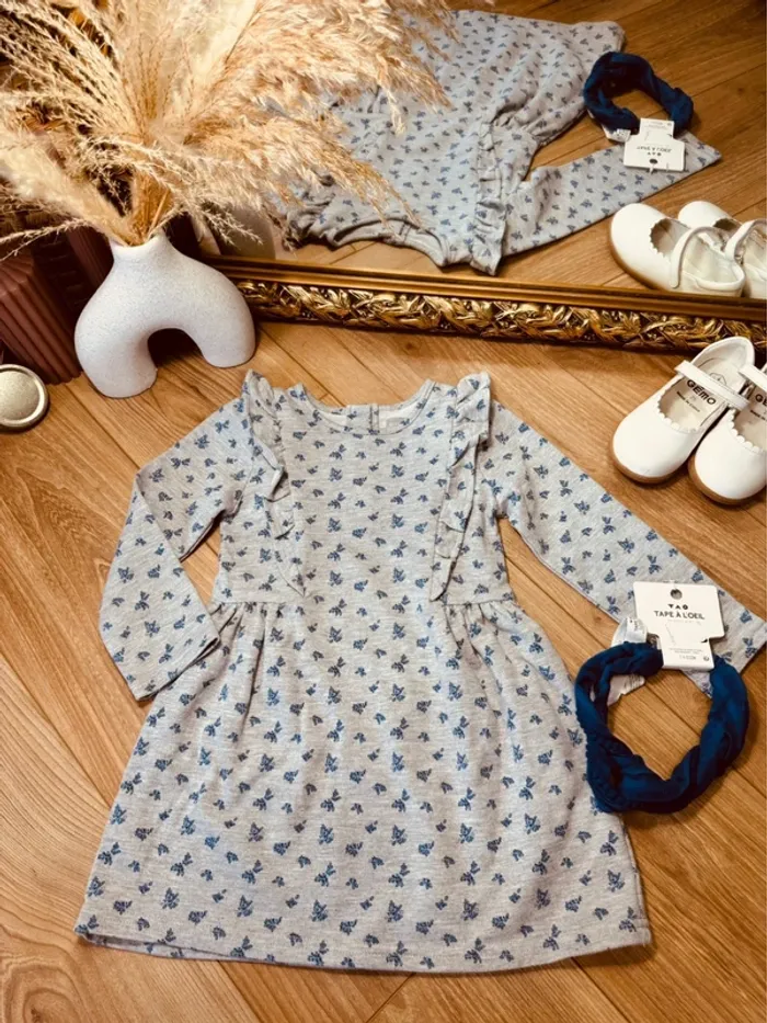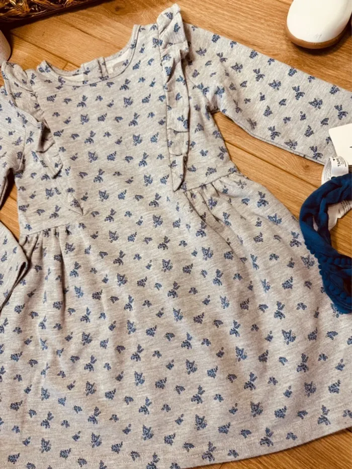 Taille 2-3 ans robe et bandeau fille TAO Primark bleue grise * fleurs * 🌷 - photo numéro 2