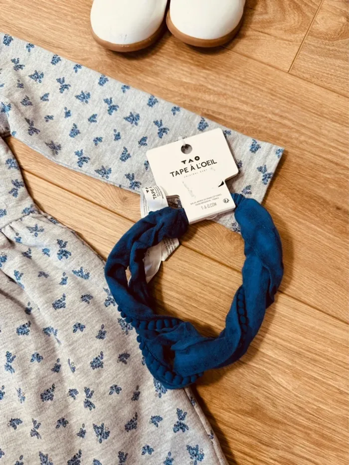 Taille 2-3 ans robe et bandeau fille TAO Primark bleue grise * fleurs * 🌷 - photo numéro 4