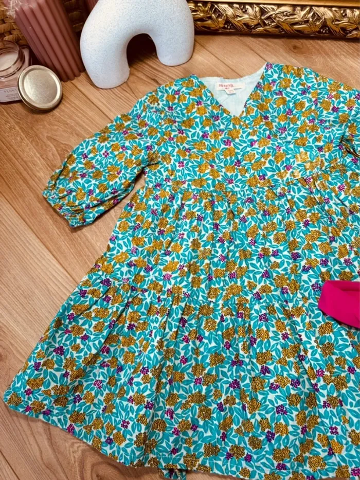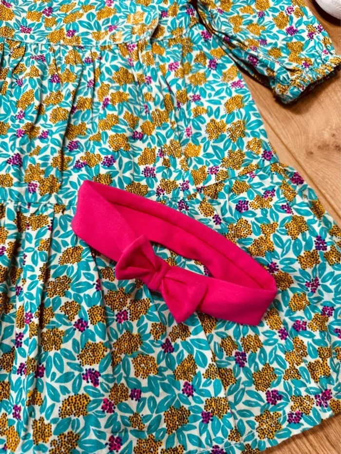 Taille 3 ans robe et bandeau fille Dpam menthe et fuchsia *  feuilles * 🩷 - photo numéro 1