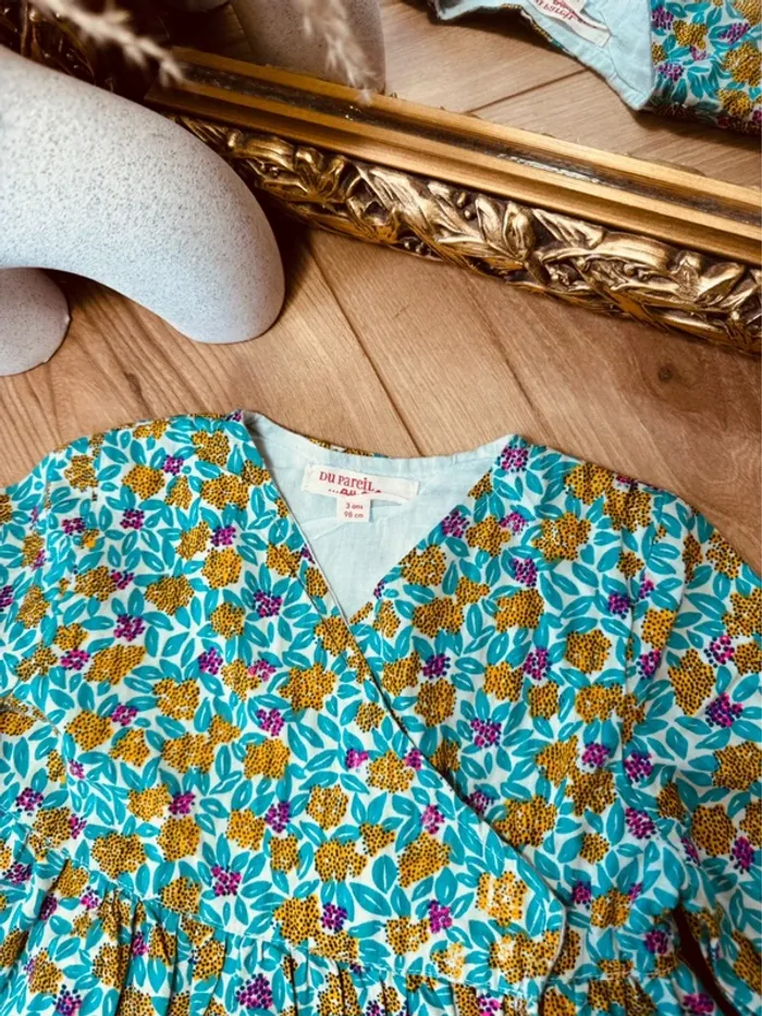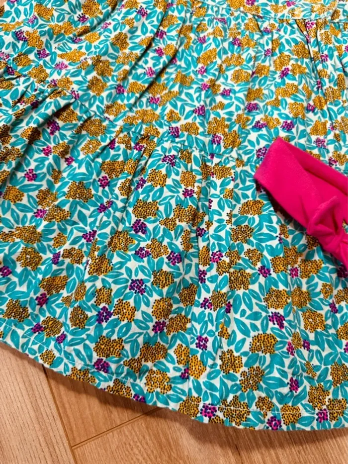 Taille 3 ans robe et bandeau fille Dpam menthe et fuchsia *  feuilles * 🩷 - photo numéro 5