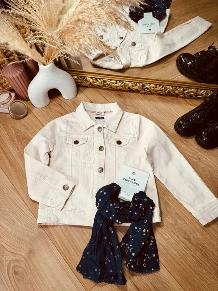 🩷 en excellent état, * veste en jeans * chèche NEUVE AVEC ÉTIQUETTE Pour voir mes autres annonces ↩️ #fille6ansmorganleclerc ✅ Dressing trié par taille avec les # dans mon À PROPOS ⚠️ les chaussures ne sont pas à vendre !!!