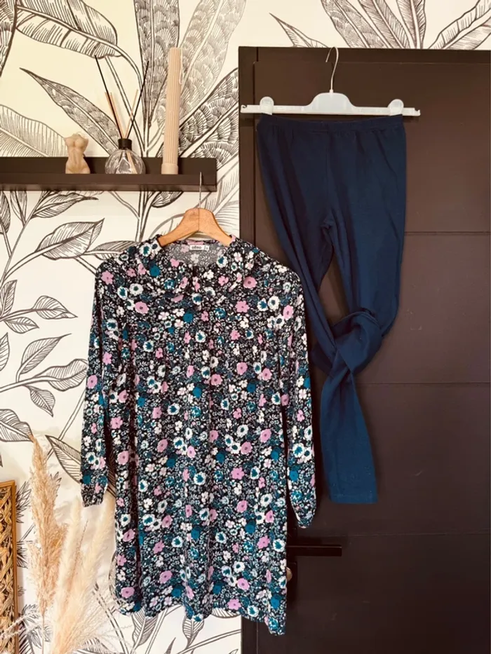 Taille 12 ans robe et legging fille Gemo bleu et Lila * fleurs * 🌸 - photo numéro 1