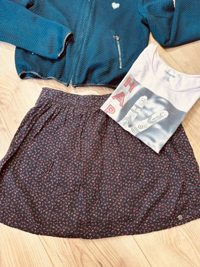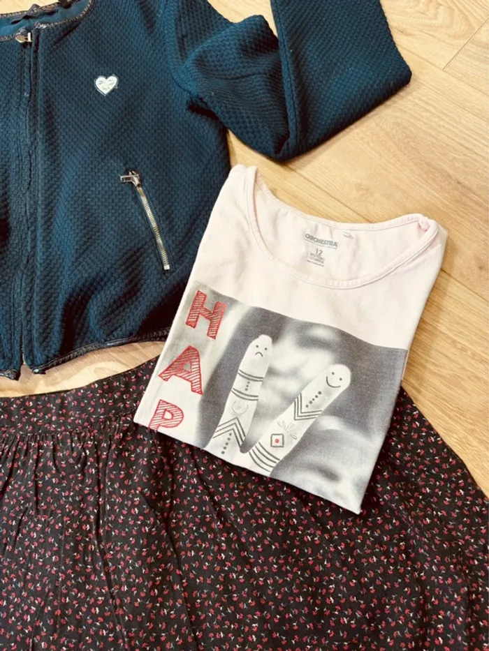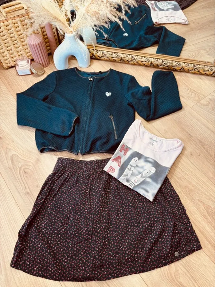 🩷 en bon état, * Teeshirt à manches courtes * Jupe , fermeture éclair sur le côté * veste courte Pour voir mes autres annonces ↩️ #fille12ansmorganleclerc ✅ Dressing trié par taille avec les # dans mon À PROPOS