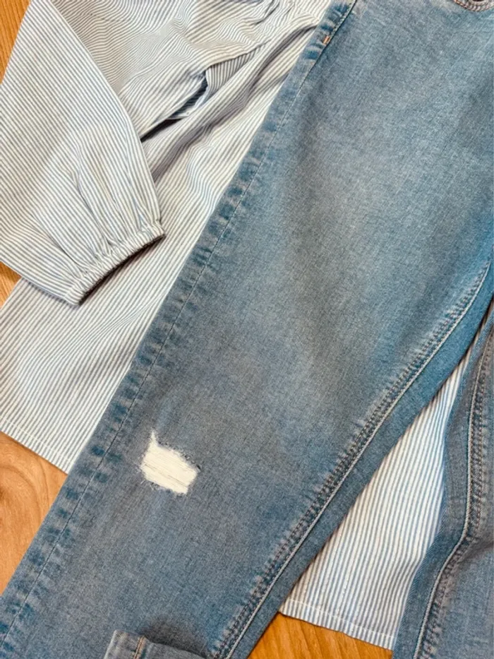 Taille 8 ans tenue 2 pièces fille TAO bleue et bleu jean * rayures * 🌺 - photo numéro 4