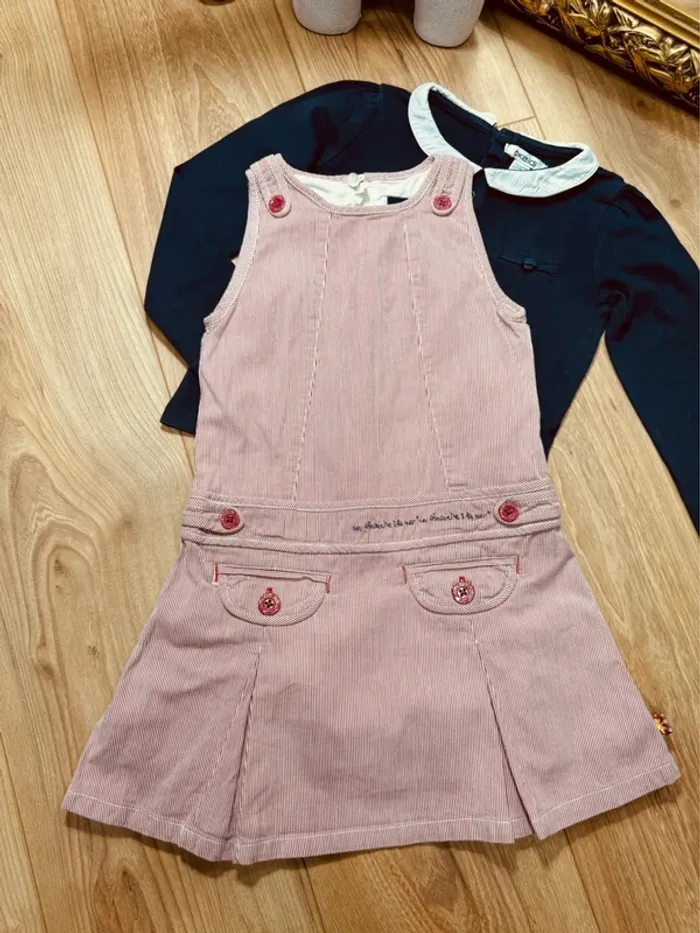 Taille 4 ans robe et teeshirt fille Sergent Major Okaidi bleu marine et rouge * rayures * 🌹 - photo numéro 1