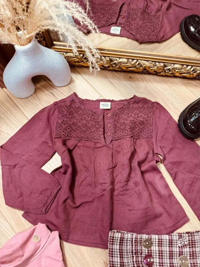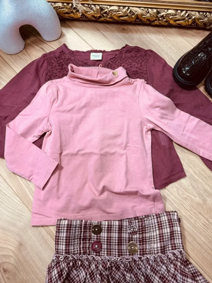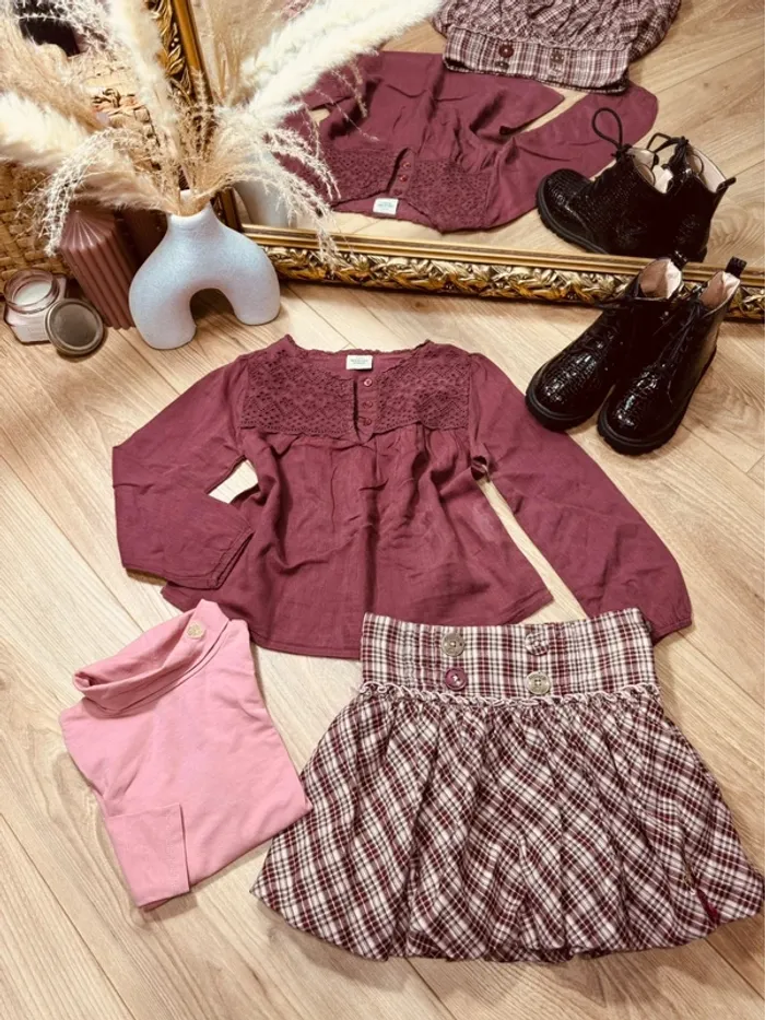 🩷 VÊTEMENT D’OCCASION !!! Encore en très bon état, * sous pull * blouse évasée à manches longues * jupe taille réglable Pour voir mes autres annonces ↩️ #fille4ansmorganleclerc ✅ Dressing trié par taille avec les # dans mon À PROPOS ⚠️ les chaussures ne sont pas à vendre !!! ❌ photos non libre de droit