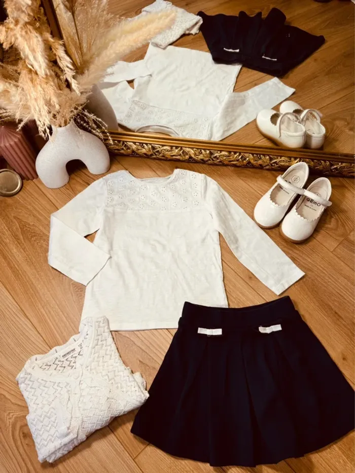 Taille 4 ans tenue 3 pièces fille multimarque blanche bleue marine * chic * 🌸 - photo numéro 1