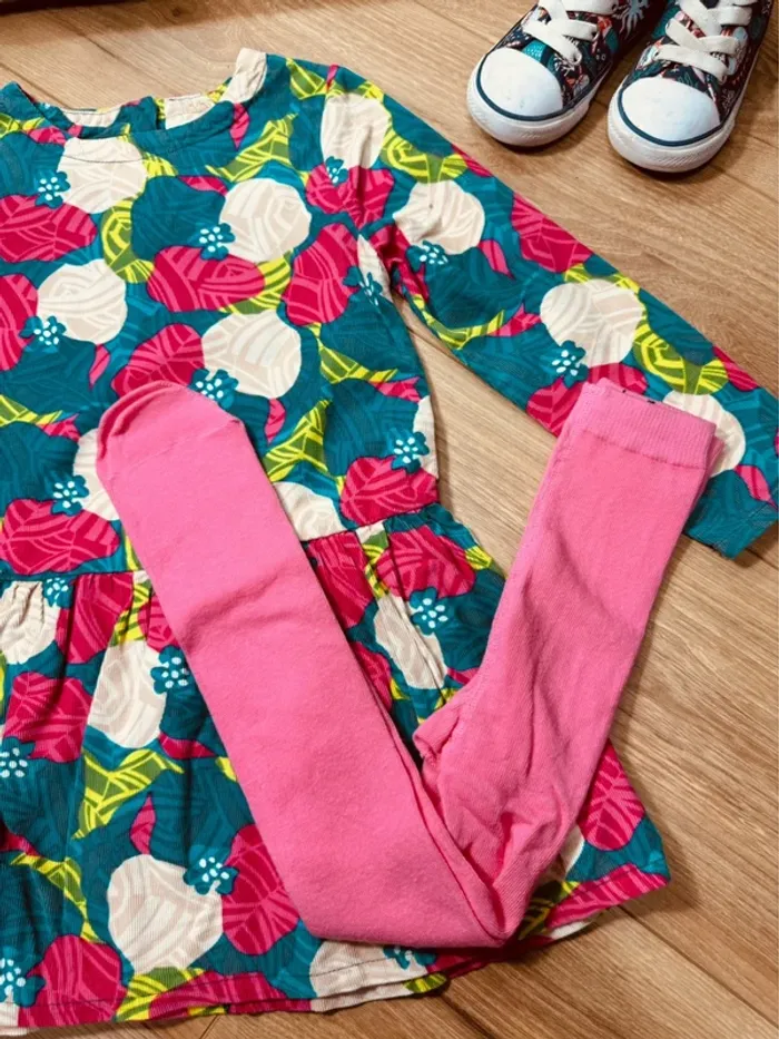 Taille 5 ans tenue 3 pièces fille DPAM turquoise rose * fleurs * 🌷 - photo numéro 1