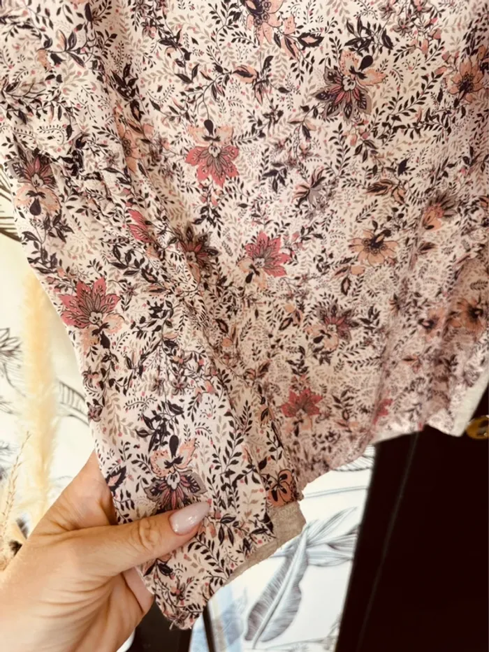Taille 38 ~ M blouse / teeshirt femme Camaïeu beige et violet * floral * 🌷 - photo numéro 5
