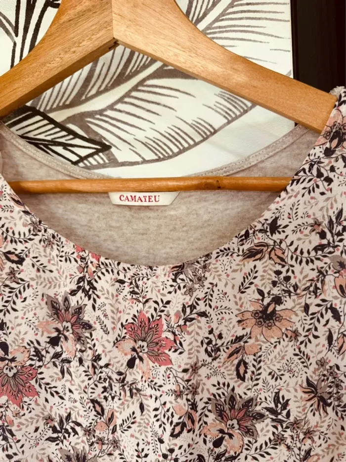 Taille 38 ~ M blouse / teeshirt femme Camaïeu beige et violet * floral * 🌷 - photo numéro 1